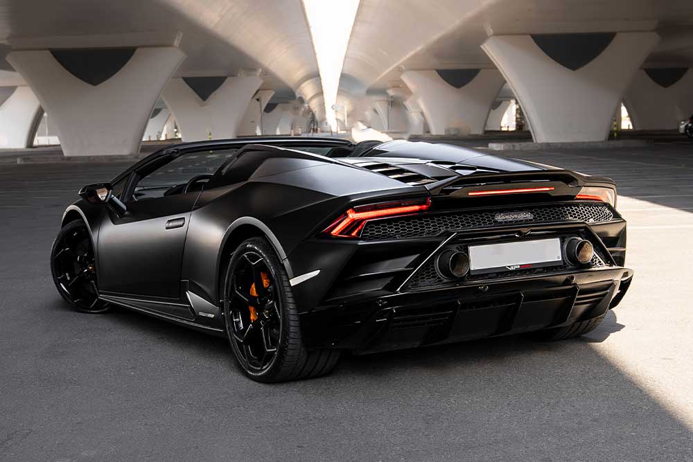 The Lamborghini Huracan Evo is an engineering masterpiece designed to deliver adrenaline at every turn. Featuring a naturally aspirated V10 engine, razor-sharp aerodynamics, and advanced driving dynamics, the Evo is built to excite. Its matte black finish and sharp design scream presence, while the convertible layout makes it ideal for scenic drives through Dubai. Whether for an event, weekend thrill, or a VIP experience, the Huracan Evo delivers perfection.